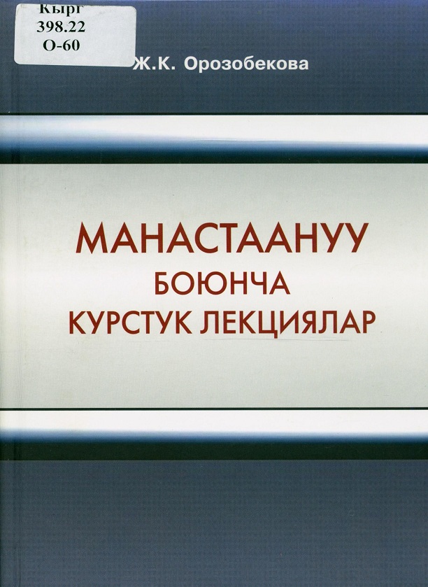 Орозбекова, Ж.К. Манастаануу боюнча курстук лекциялар [Текст]: учебник / Ж. К. Орозбекова, 2014. - 228с.